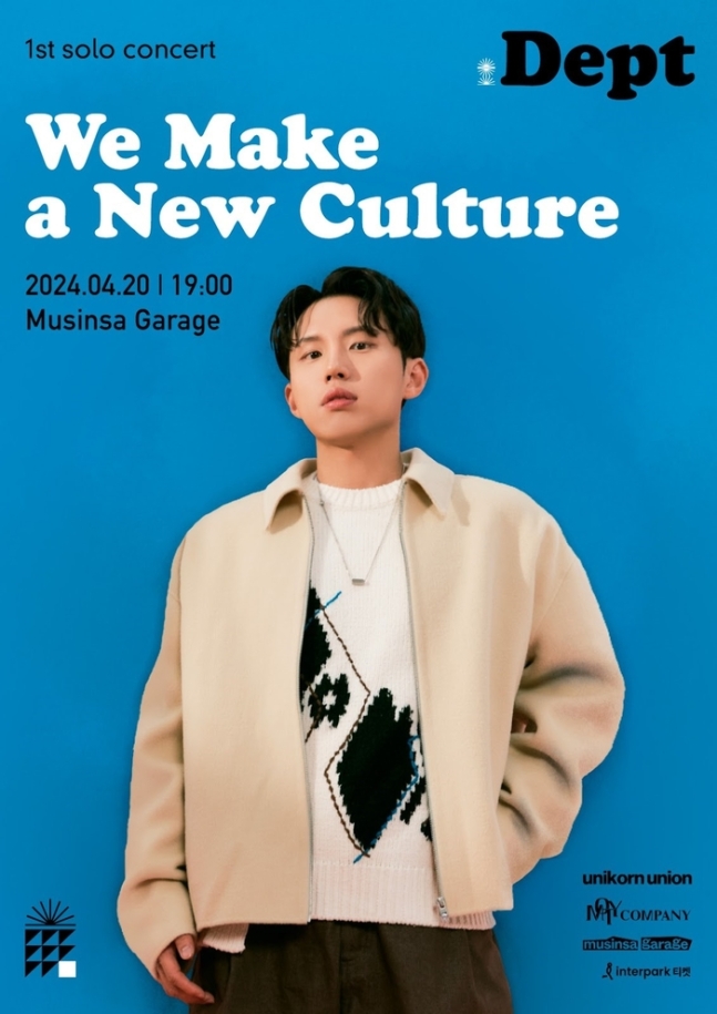 싱어송라이터 프로듀서 뎁트(Dept)가 2024년 4월 20일 오후 7시 서울 마포구 소재 ‘무신사 개러지’에서 첫 단독콘서트 ‘We Make a New Culture’를 개최한다.