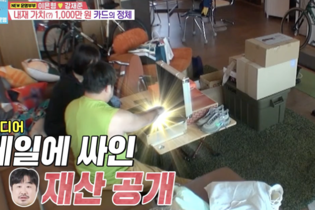 이어 두 사람은 깡총이방을 만들기로 결심, 집 정리를 하기로 했다. 특히 창고에는 천만원대 자전거만 2대. 값비싼 물건들이 가득했다. 모두 “저 방에만 몇 천만원 있다”며 깜짝 놀랄 정도. 심지어 억소리 나는 재테크NBA 카드 도 있었다.긁지 않은 박스를 한 곳에 모은 것. 강재준은 “나의 흔적과 추억이라 버릴 수 없다”며 본가 다락방에 보관할 것이라 했다.