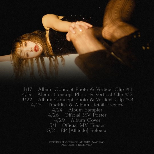 소속사 앳에어리어에 따르면 현아는 2024년 5월 2일 새 EP '애티튜드(Attitude)'를 발매한다.
