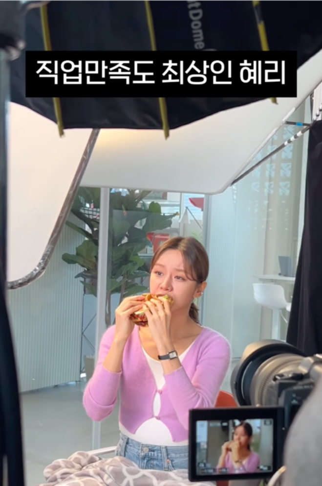 이어진 촬영에서, 혜리는 햄버거를 맛있게 베어물며 만족스러운 모습을 보이고 있다. 영상을 본 팬들은 ‘진짜 복스럽게 먹는다’ ‘오늘은 햄버거다’ 등의 다양한 반응을 보였다.
